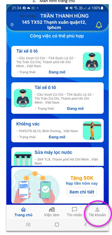 PHẦN 2: NẠP VÍ SỬ DỤNG CÁC DỊCH VỤ TRẢ PHÍ (áp dụng cho tất cả người dùng trên 2 app GỌI NHÂN CÔNG và GỌI NHÂN CÔNG – THỢ)