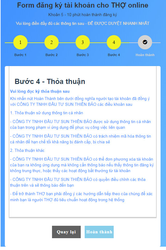 Bước 4: Đọc thỏa thuận, nếu đồng ý nhấn nút hoàn thành