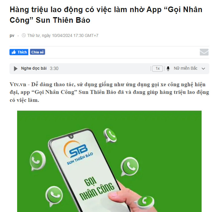Ứng dụng “Gọi Nhân Công” do Công ty TNHH đầu tư Sun Thiên Bảo phát triển, có cách thức hoạt động giống với ứng dụng gọi xe công nghệ hiện nay. Khi khách hàng có nhu cầu tìm thợ ở ngành nghề nào, khách hàng sẽ gửi thông tin yêu cầu lên hệ thống. Sau đó, hệ thống sẽ kết nối với các thợ phù hợp ở địa chỉ gần nhất để khách hàng lựa chọn.